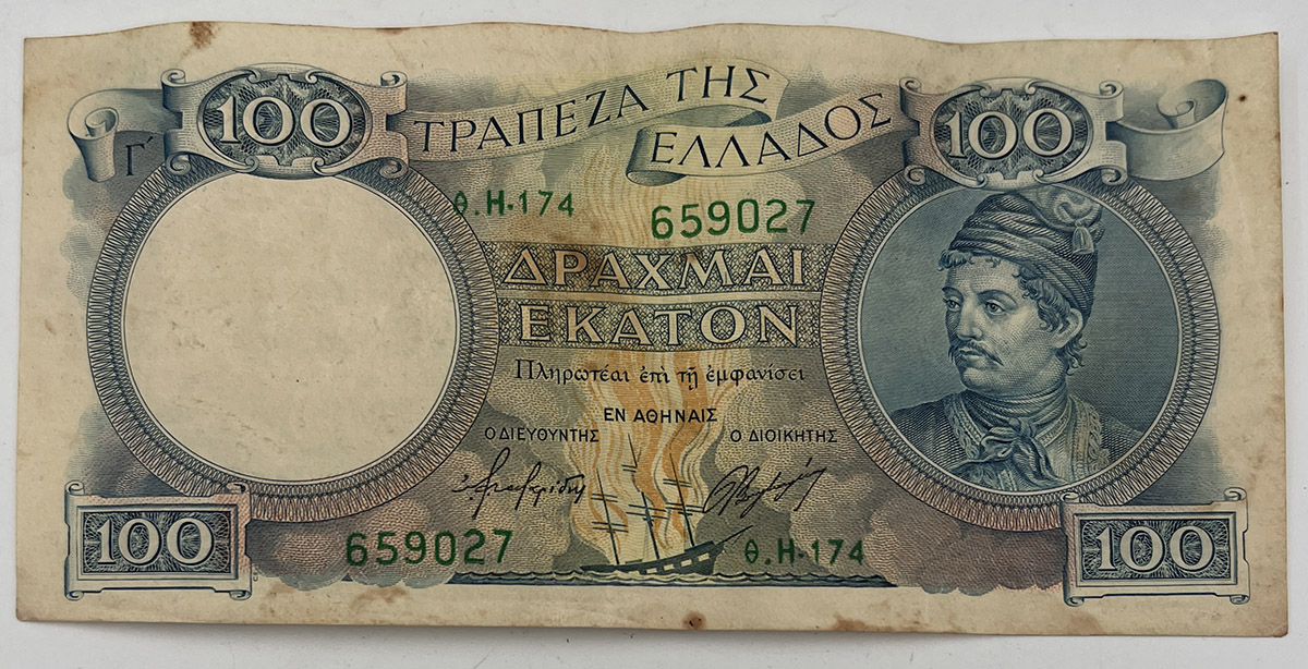 100 Δραχμές 1944 Κανάρης ΤΡΑΠΕΖΑ ΕΛΛΑΔΟΣ B02