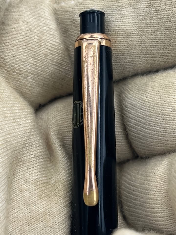 Material: Black Resin; Gold Filled Trimmings & Clip; Solid Brass Mechanism